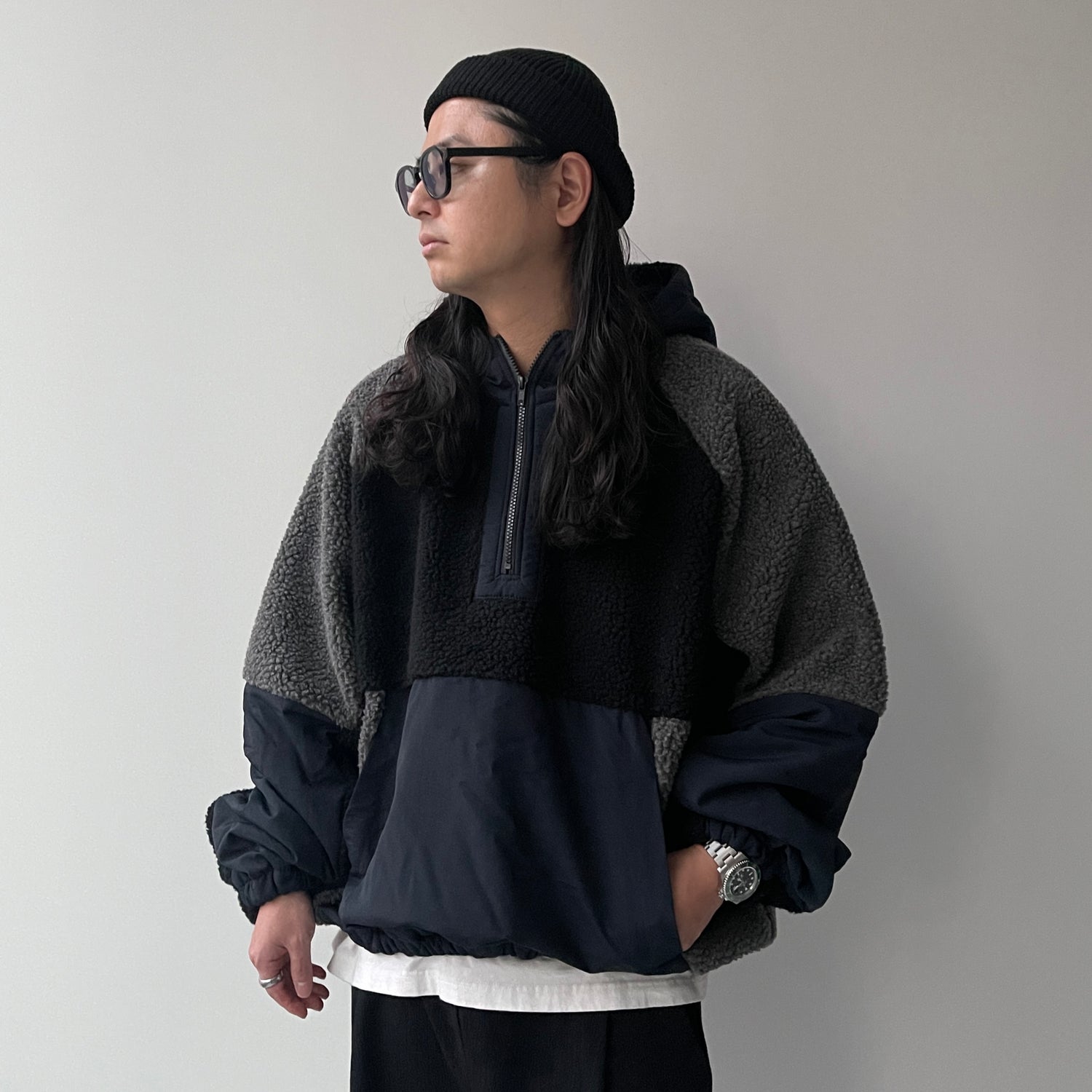 ボアにフードにハーフジップて。